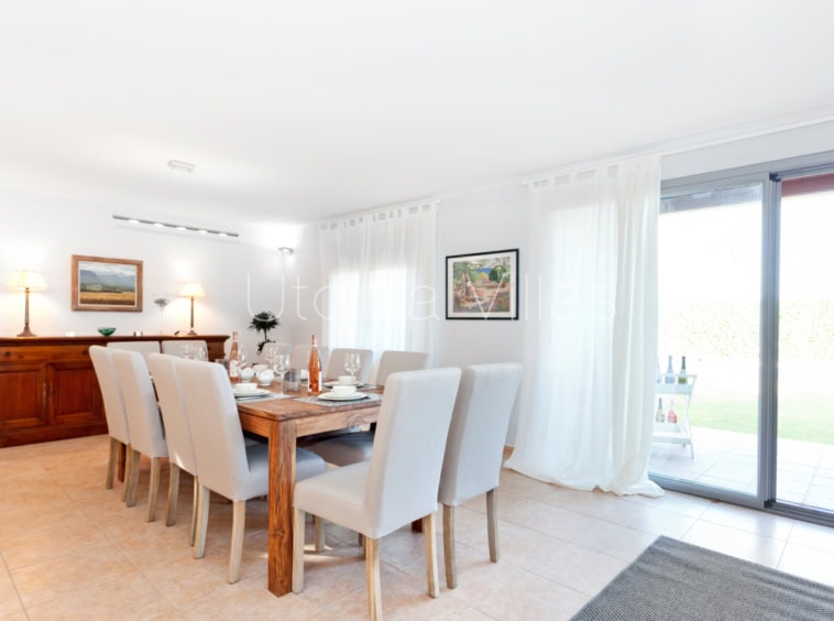 - Sala de estar y comedor de planta abierta con acceso directo al jardín delantero, piscina y zonas chill-out