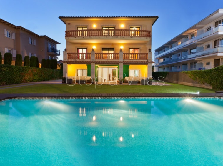 Villa Lola se erige como una de las propiedades más impresionantes frente al mar en Sitges—una majestuosa residencia situada directamente en el Paseo Marítimo con el Mar Mediterráneo a solo unos pasos. Esta excepcional villa combina interiores espaciosos con el lujo poco común de dos enormes jardines planos, ofreciendo el escenario perfecto tanto para grandes celebraciones como para una relajación serena.