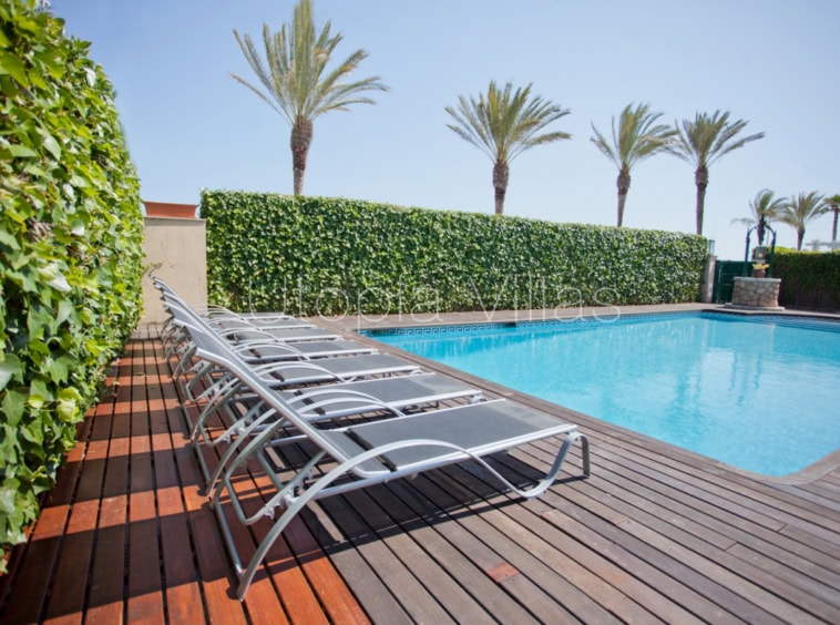 - Jardín delantero con gran piscina privada y vistas al Mediterráneo